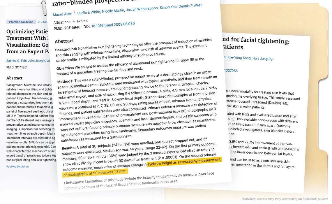 5. Werschler WP, et al. Ultrasound energy for noninvasive tissue lifting and tightening. J Drugs Dermatol. 2018;17(10):1034–1040.