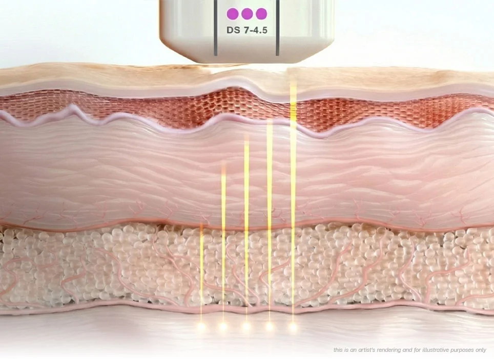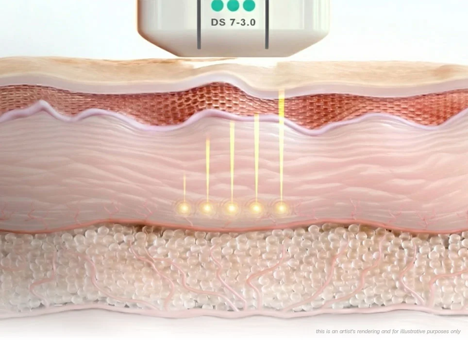 Each treatment uses different ultrasound tips (called transducers) that target specific layers of the skin. Think of it as treating the foundation, the support, and the surface — all in one session, for a natural, multi-dimensional lift.