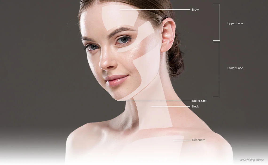 For facial rejuvenation, Ultherapy Prime Program helps lift and tighten areas where early sagging often shows first: