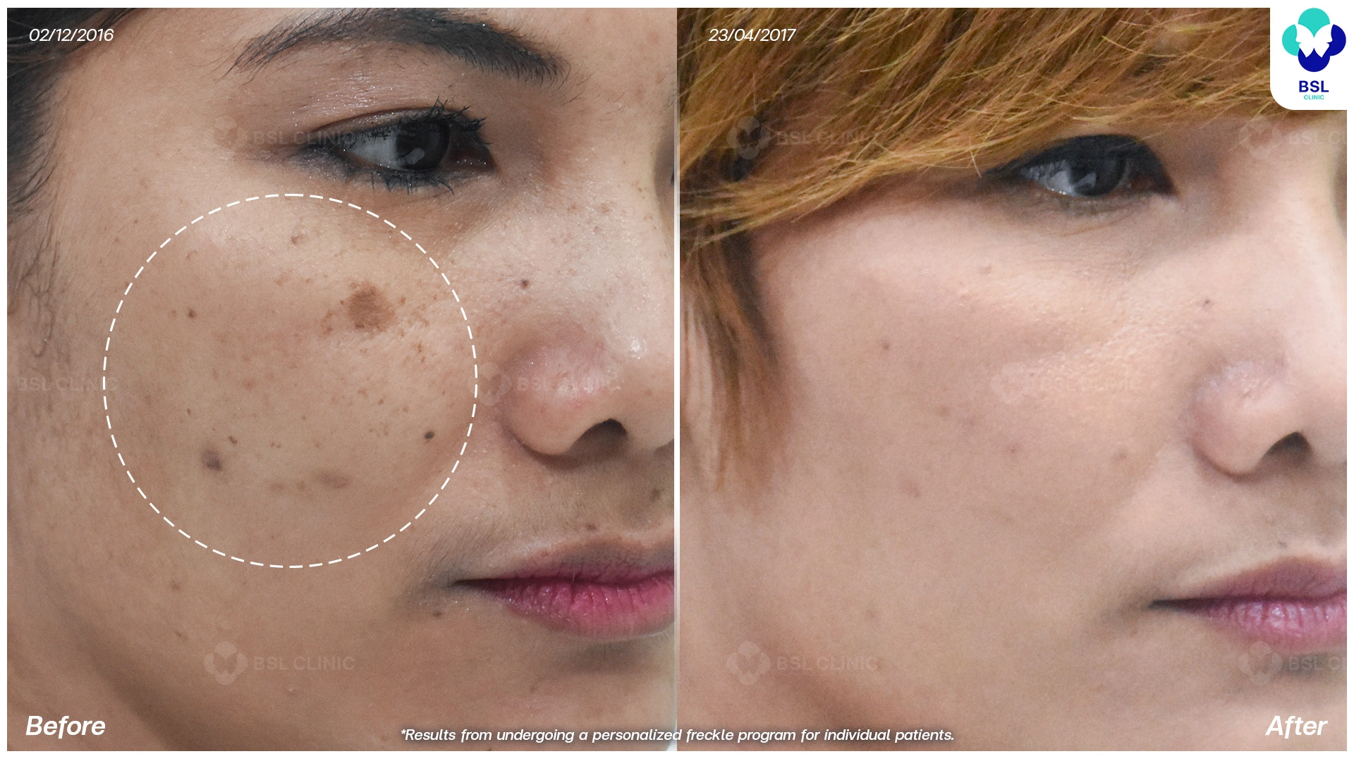 เลเซอร์ดึงเม็ดสีออก เพื่อผิวที่เนียนกระจ่างใสขึ้น เลเซอร์ดึงเอาเม็ดสีใต้ผิวหนังออกไป ข้อดีของเลเซอร์ตัวนี้ ยังช่วยลดการสร้างเม็ดสีเมลานิน ลดการเกิดรอยดำ (PIH) และลดโอกาสที่ฝ้าจะกลับมาเข้มขึ้น ขั้นตอนการรักษานี้คุณหมอ BSL จะปรับตั้งค่าพลังงานให้มีความเฉพาะกับเม็ดสีเมลานินเช่นกัน แม้ในปัญหา “กระลึก” ที่รักษายากกว่า “กระตื้น” บีเอสแอลก็สามารถรักษาให้จางลงได้เช่นกัน