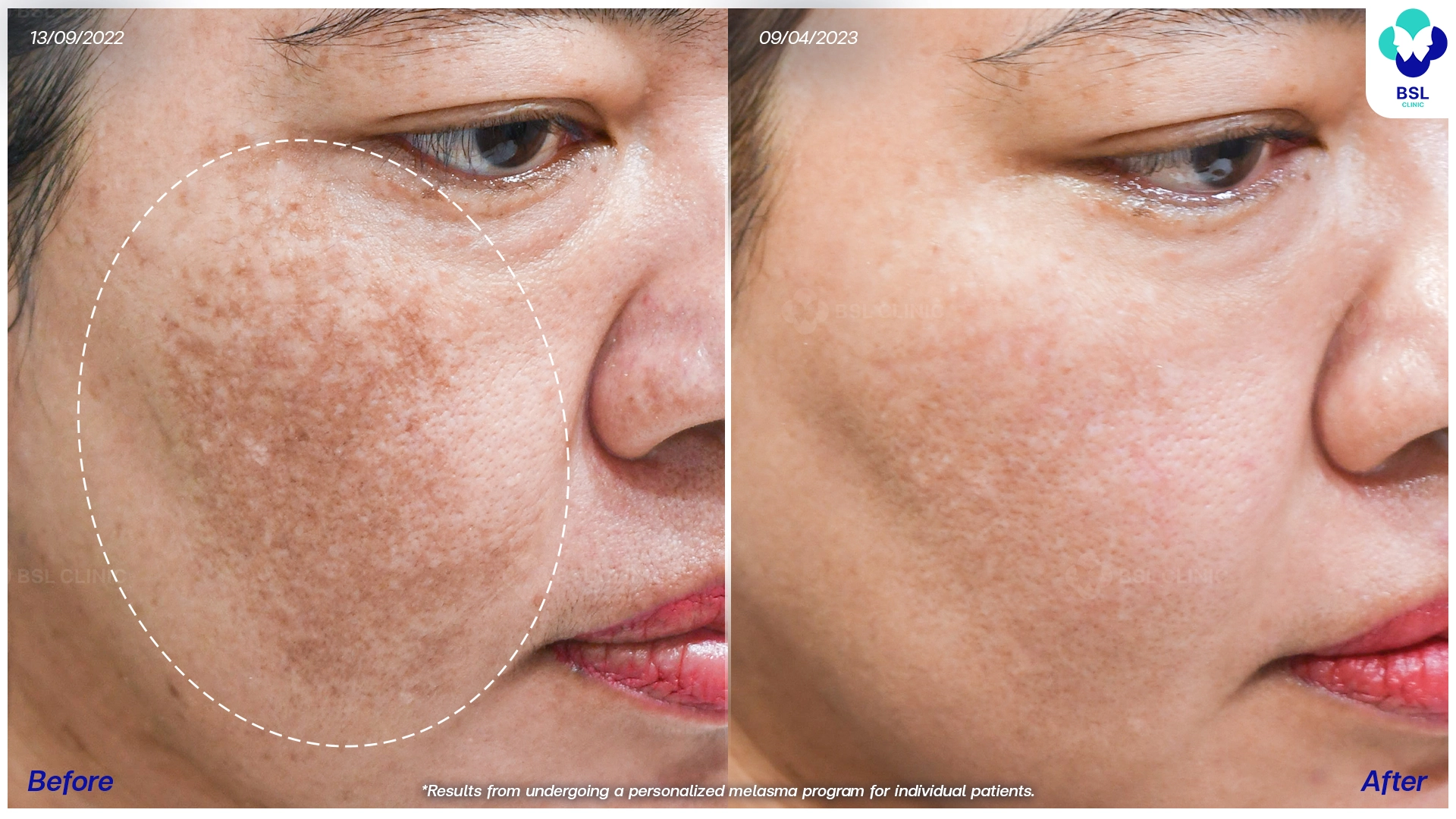 ฝ้ามักไม่ใช่ปัญหาที่จบได้ภายในครั้งเดียว ทั้งปัจจัยแสงแดด ฮอร์โมน พันธุกรรม และการใช้ชีวิตล้วนมีส่วนทำให้สีผิวกลับมาคล้ำไม่สม่ำเสมอได้ง่าย การดูแลและรักษาฝ้าจึงต้องให้ความสำคัญทั้ง “ผลลัพธ์หลังทำ” และ “การดูแลต่อเนื่อง” เพื่อช่วยให้เม็ดสีดูสม่ำเสมอขึ้น พร้อมลดโอกาสที่ฝ้าจะกลับมากวนใจซ้ำ โปรแกรมดูแลและรักษาฝ้าของ BSL ในหน้านี้เป็นตัวอย่างพัฒนาการของผิวจากเคสจริง ซึ่งผลลัพธ์อาจแตกต่างกันไปตามสภาพผิวและการดูแลของแต่ละคน