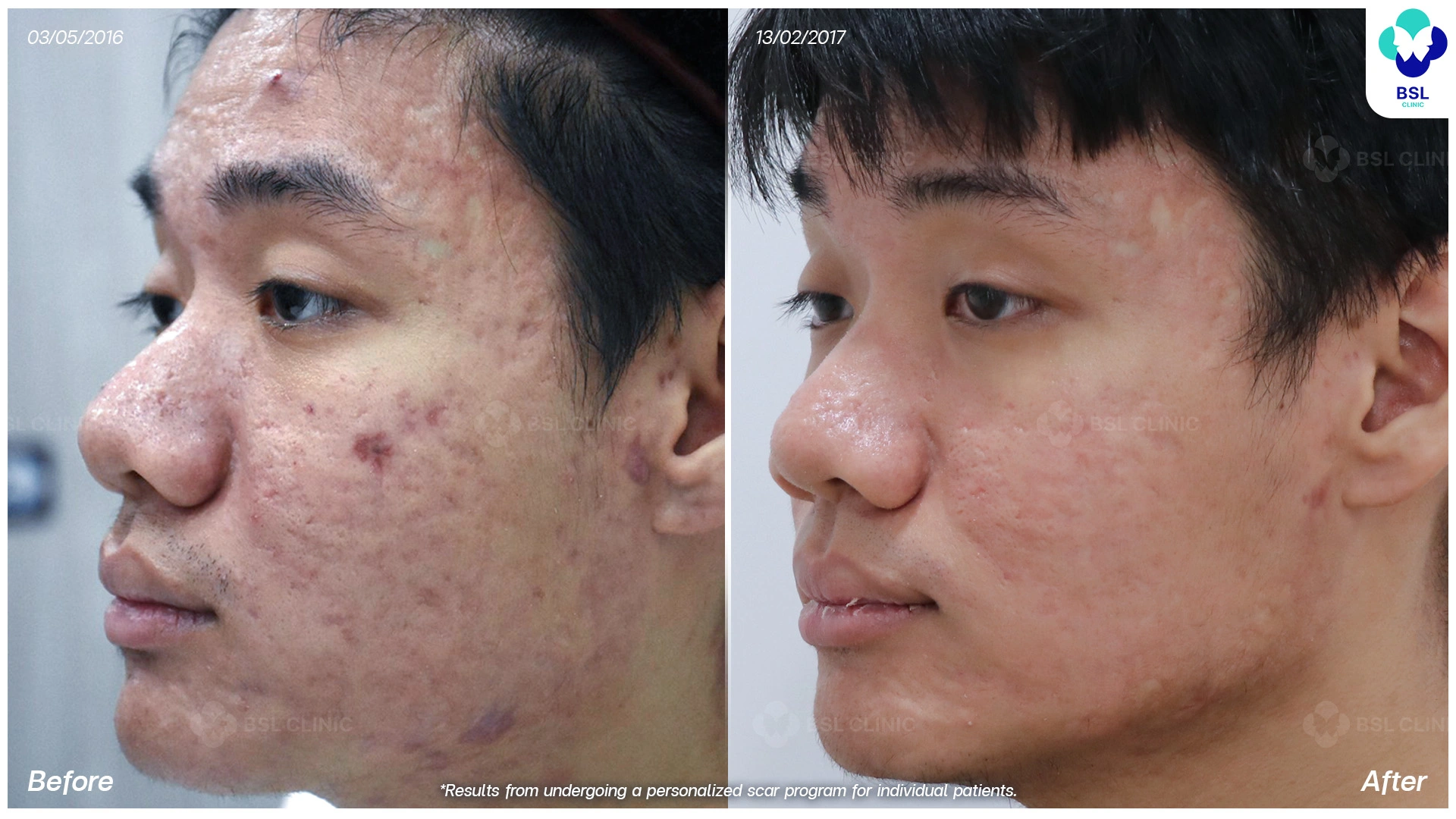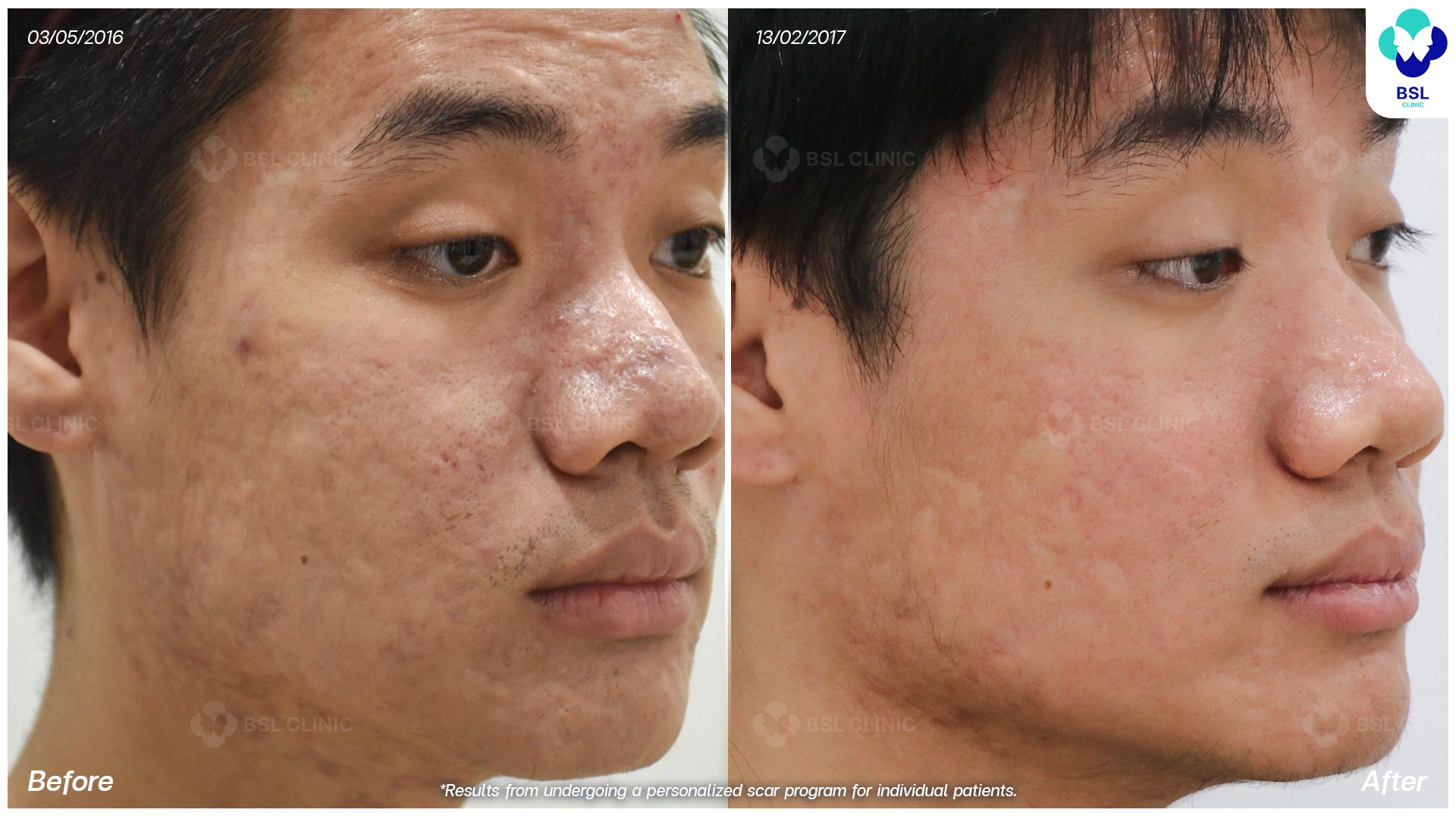 การรักษาหลุมสิว ของ BSL เราใช้เลเซอร์ที่ลงไปทำงานตัดพังพืดที่ขึงตึงใต้ผิวหนังที่ทำให้คอลลาเจนบริเวณนั้นเรียงตัวกันไม่เป็นระเบียบ ที่เป็นสาเหตุให้ผิวด้านบนเกิดเป็น “หลุมสิว” ที่เกิดขึ้นหลังจากเป็นสิวอักเสบที่รุนแรง โดยพลังงานคลื่นเลเซอร์นอกจากจะช่วยตัดพังพืด ยังช่วยกระตุ้นให้เกิดคอลลาเจนขึ้นมาใหม่ และจัดเรียงตัวกันอย่างเป็นระเบียบ ซ่อมแซมผิวที่เสื่อมสภาพ และค่อยๆเกิดการสร้างผิวและเกิดเนื้อผิวขึ้นมาใหม่ ผิวภายนอกจึงดูเรียบเนียนขึ้น